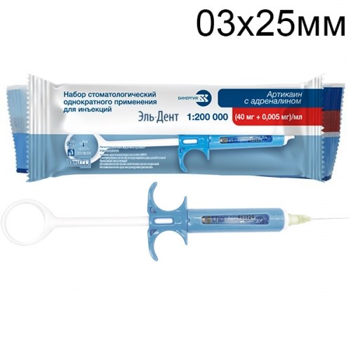 Описание: Артикаин БИНЕРГИЯ 1:200 ШПРИЦ (игла 03х25мм.)