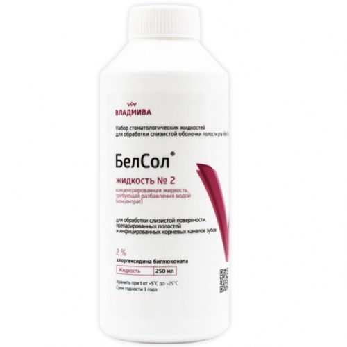 БЕЛСОЛ №2 - раствор хлоргексидина 2% 250 мл - жидкость для обработки слизистой оболочки полости рта.