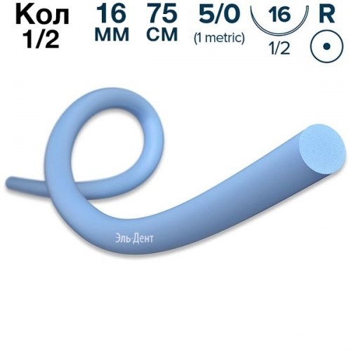 Описание: ЭЛЛЕН 5-0 75 см, 16 мм, 1/2, колющая, 12 шт голубой, диаметр иглы 0,45