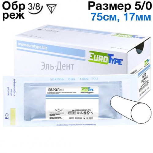 ЕвроЛен 5/0, 75см, 17мм, обр.реж., 3/8, 12шт.-синтетический нерассасывающийся шовный материал на основне полипропилена