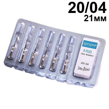 Файлы машинные R-files Gold, для первичной эндодонтии, размер 20/.04, длина 21мм, никель-титан - 6 шт. STEA