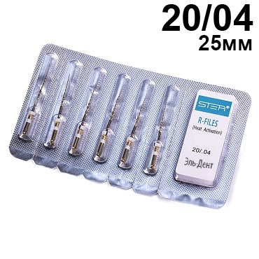Файлы машинные R-files Gold, для первичной эндодонтии, размер 20/.04, длина 25мм, никель-титан - 6 шт. STEA