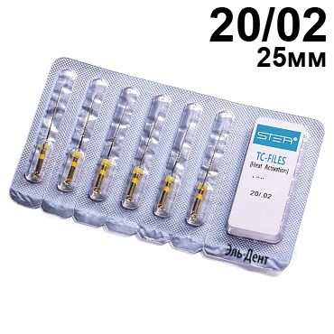 Описание: Файлы машинные с памятью формы TC-files, размер 20/.02, длина 25мм, никель-титан - 6 шт. STEA