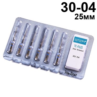 Описание: Файлы машинные с памятью формы TC-files, размер 30/.04, длина 25мм, никель-титан - 6 шт. STEA