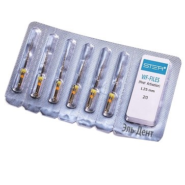 Описание: Файлы машинные WF-files Gold реципрокные с ромбовидным сечением, ассорти размер 20-35, 25мм, никель-титан - 6 шт. STEA