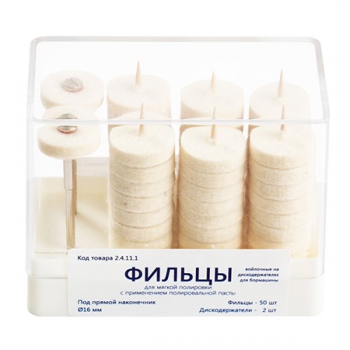 Описание: Фильцы войлочные на дискодержателях для бормашины (2 дискодержателя, 50 фильцев), Целит