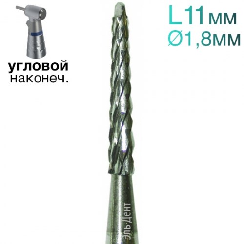 Описание: Фреза Линдеманна, конус, спираль, L=11 мм, d=1,8 мм, 2 шт.