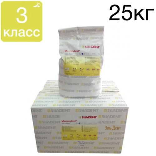 Гипс Siladent Marmodent 3 класса, натуральный стоматологический гипс, цвет жёлтый, особенно подходит для изготовления моделей под протезы и ортодонтических конструкций, за счет особой структуры сырья и технологического процесса обработки.
