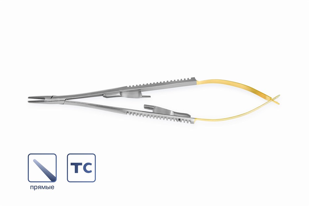 Иглодержатель микрохирургический Castroviejo с вставками прямой 14 см