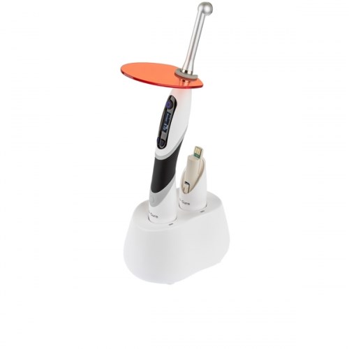 Легкая замена аккумулятора путем нажатия кнопки на устройстве. Аккумулятор может заряжаться в зарядном устройстве отдельно от полимеризационной лампы. Два аккумулятора в комплекте устройства позволяют работать без перерыва.