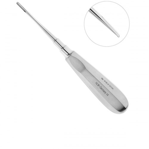 Люксатор HLW 13-22LX прямой, 3 мм изготовлен немецкой компанией HLW Dental Instruments удлиненный люксатор с шириной рабочей части 3 мм, предназначенный для атравматичного удаления корней и зубов на нижней и верхней челюсти. Ручка, соединительный стержень и рабочая часть инструмента находятся на одной прямой, что позволяет использовать люксатор в глубоких и труднодоступных участках полости рта. Внутренняя поверхность щечки инструмента повторяет форму зуба, а острые и тонкие режущие края эффективно подрезают периодонтальную связку. В отличие от традиционных методов экстракции зуба, применение люксаторов менее травматично. У данной модели инструмента помимо граней на внешней поверхности есть еще и выемки под пальцы, благодаря которым люксатор не скользит и прочно держится в руке. Полая ручка инструмента позволяет снизить нагрузку на руку и облегчает проведение операции по удалению корней и зубов в ротовой полости.