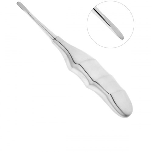 Щечка люксатора овальной формы, с острыми и тонкими режущими краями, которые эффективно подрезают периодонтальную связку. У инструмента ручка, соединительный стержень и рабочая часть находятся на одной прямой. Благодаря такому строению люксатора легко и быстро осуществить самые сложные удаления. Ручка инструмента легкая, гладкая и имеет эргономически удобные анатомические изгибы под пальцы руки. Проводить операцию по удалению корней или зубов люксатором с такой ручкой очень удобно.