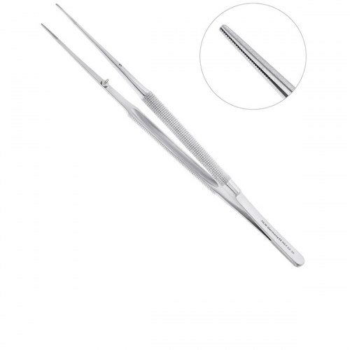 Микро-пинцет HLW 22-33 анатомический Gomel, прямой, 18 см применяется для захвата, а также удерживания мягких тканей при проведении манипуляций в ротовой полости. Инструмент изготовлен компанией HLW Dental Instruments. Прямые рабочие части пинцета имеют ретенционный узор на внутренних поверхностях, благодаря чему инструмент надежно фиксируется на различных вспомогательных и диагностических принадлежностях, а также мягких тканях в около и ротовой полости. Тонкие и узкие бранши анатомического пинцета обеспечивают хорошую визуализацию рабочего поля при манипуляциях в полости рта. На внутренней поверхности инструмента имеется стоппер, который способствует плотному смыканию рабочих частей пинцета и предотвращает их расхождение друг относительно друга.