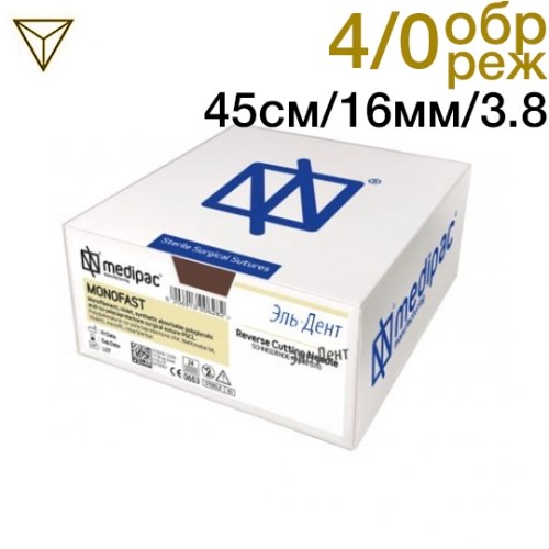 Описание: Монофаст 4/0 45см 16мм 3/8 обратно-режущая 24шт фиолетовый