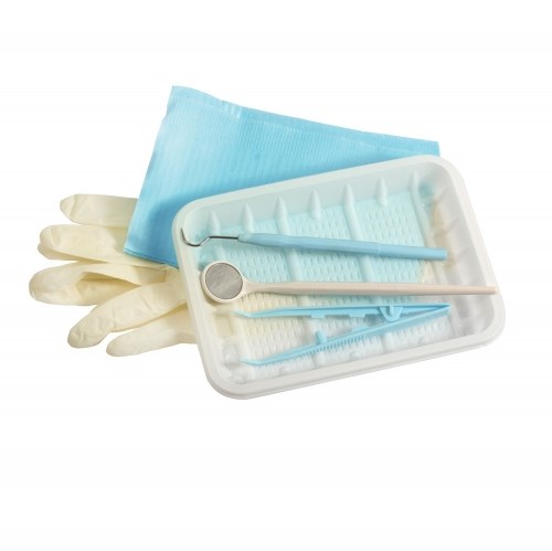 Набор стоматологический одноразовый стерильный ЕваДент (зонд, пинцет, зеркало, салфетка, перчатки, лоток)
