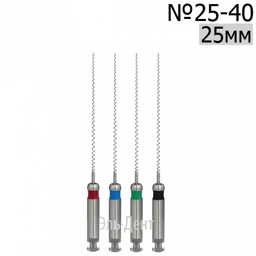 Комплектация «ассорти» (размеры 25-40) предоставляет врачу готовый набор для работы с каналами разной ширины, а цветовая кодировка по ISO позволяет моментально и без ошибок выбрать инструмент нужного размера.