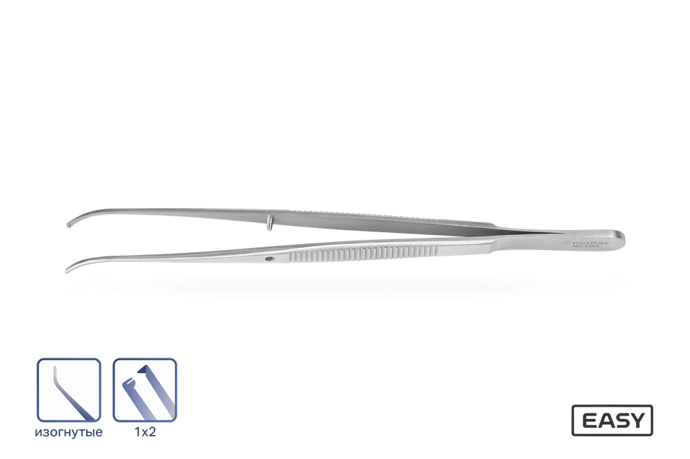 Пинцет EASY хирургический 1х2 изогнутый 12.5 см