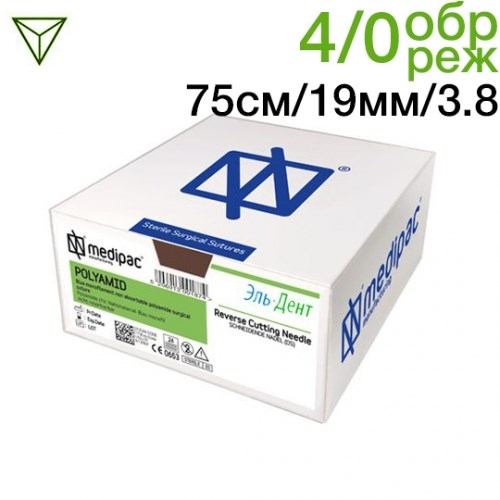 Полиамид 4/0 75см 19мм 3/8 обратно-режущая 24шт голубой