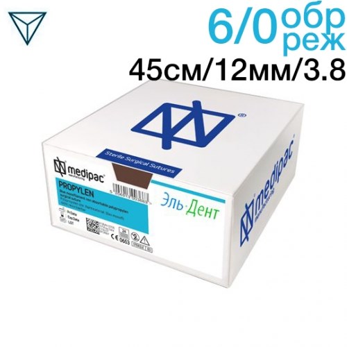 Пропилен 6/0 45см 12мм 3/8 обратно-режущая 24шт голубой