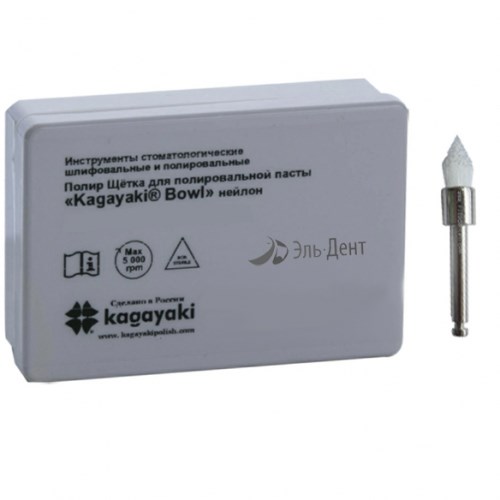 Kagayaki Bowl (Кагаяки Бовл) - это полировочная Щетка которая применяются для удаления мягких и твёрдых зубных отложений с внешней и внутренней поверхности зубов, для быстрой зеркальной полировки окклюзионных и вогнутых поверхностей реставраций из композитов, компомеров, стеклоиономеров и керамики, а также для профилактической обработки в целях обеспечения профессиональной гигиены полости рта. Щеточки предназначены для использования с абразивными пастами марки Kagayaki.