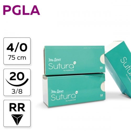 Шовный материал POLYGLACTINE 910, 4/0_75_20, рассасывающаяся, 3/8, обратно-режущая (12 шт.), SUTURA