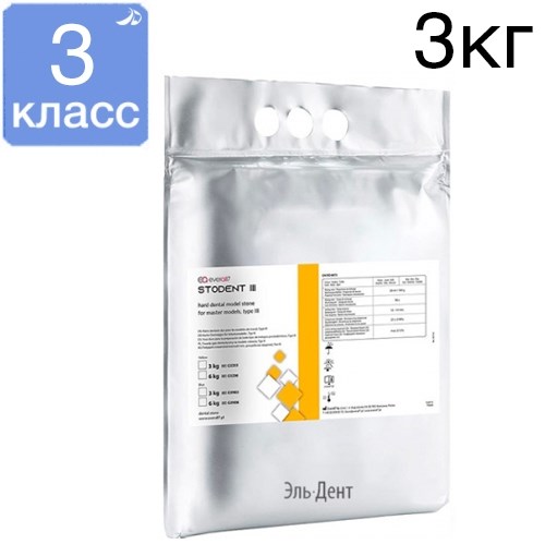 Stodent 3 (Стодент) - это гипс для моделей 3-го класса синий 3 кг, предназначен для антагонистических и рабочих моделей при изготовлении съемных и бюгельных протезов