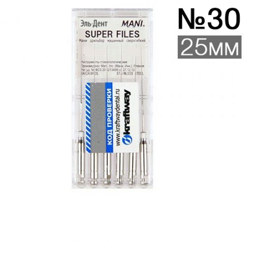 Mani Super Files (Супер Файлы Мани) - Машинный режущий стоматологический эндодонтический инструмент со спиральной нарезкой рабочей части. Рабочая часть и стержень отличаются повышенной гибкостью. Материал рабочей режущей части - нержавеющая сталь, материал хвостовика – нержавеющая сталь.