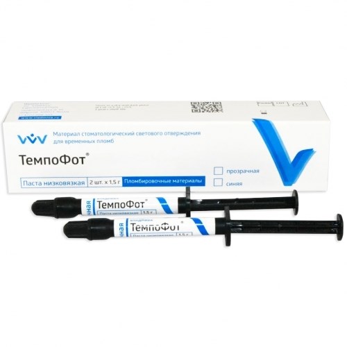 Материал «ТемпоФот» выпускается в виде пасты (прозрачной и синей), в состав которой входят: активаторы светового отверждения; стабилизаторы; технологические добавки, обеспечивающие оптимальную консистенцию; бактерицидное вещество (хлорид бензалкония), которое оказывает микробостатическое и микробоцидное действие на бактерии и кандиды.