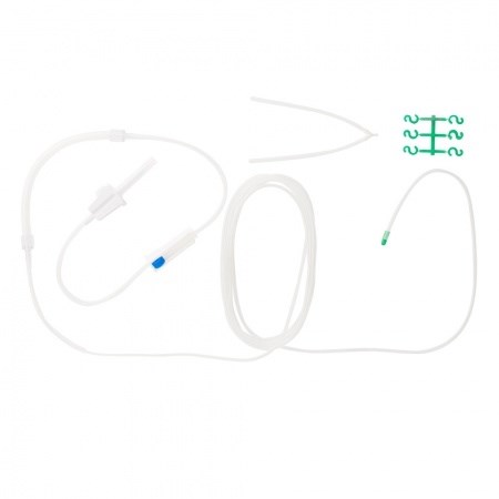 Ирригационная система Alle 270623 представляет собой трубку ирригационную в сборе с двухканальной пластиковой иглой со встроенным воздушным фильтром с заглушкой, капельной камерой, роликовым зажимом и наконечником.