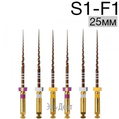 Описание: Ultratapers Gold 25мм, набор: S1-F1 (S1x2, S2x2, F1x2), стерильные машинные файлы, никель-титан, (6шт.).Eurofile