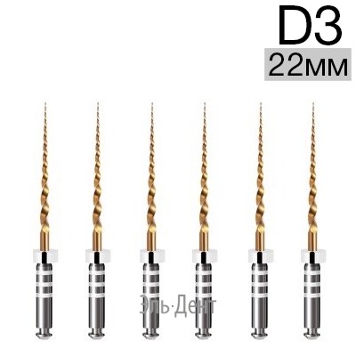 Ultratapers Gold D3, 22мм,стерильные машинные файлы для перелечивания, никель-титан, (6шт.).Eurofile