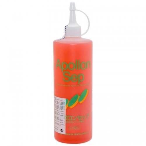 Apollon Sep это разделительное средство для пластмассовых базисов зубных протезов, основным ингредиентом которого является раствор альгината натрия, эффективное для задач по разделению кювет и гипса.