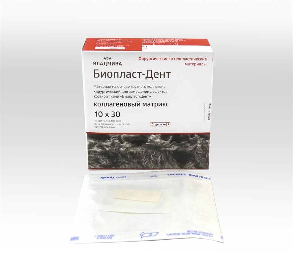 БИОПЛАСТ-ДЕНТ /КОЛЛАГЕНОВЫЙ МАТРИКС/мембрана/10 х 30 х 0,6