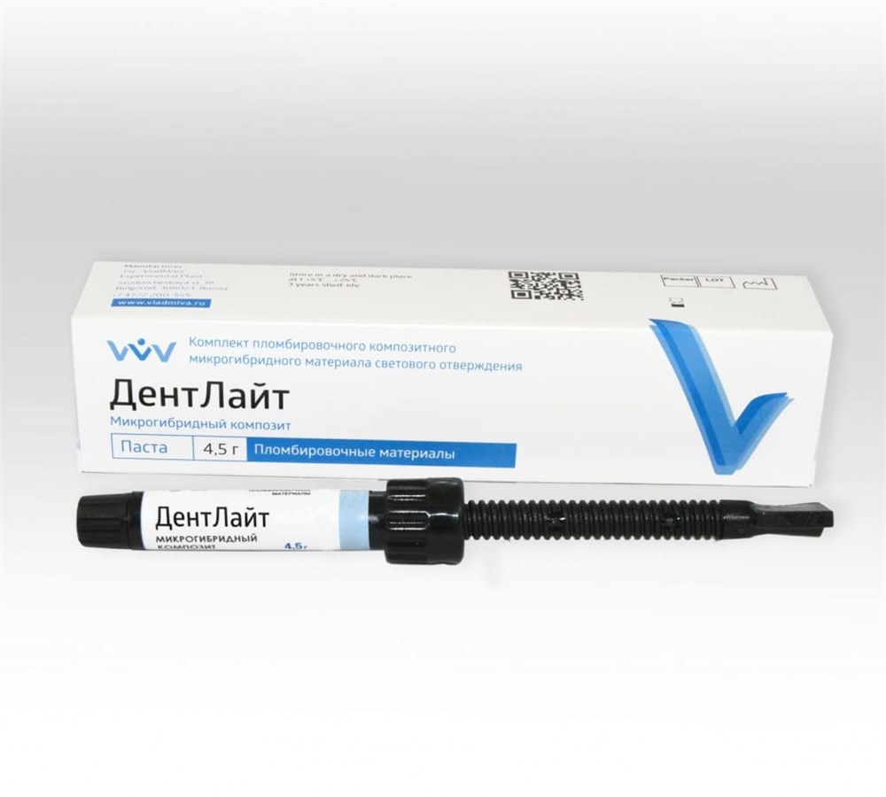 Микрогибридный композит «ДентЛайт» обладает высокими показателями прочности, повышенной цветостабильностью и удобной пластичностью, которая делает его легким при моделировании.