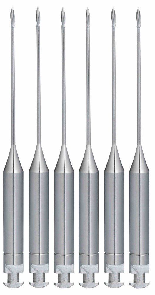 Машинный режущий стоматологический эндодонтический инструмент с короткой спиральной нарезкой вверху рабочей части. Рабочая часть с нарезкой имеет форму капли. Материал рабочей режущей части и хвостовика - нержавеющая сталь повышенной прочности. Применяется для расширения устья канала и создания прямолинейного доступа к коронковой части корневого канала.