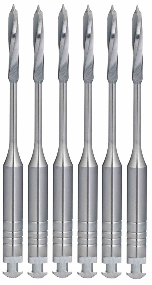 Машинный режущий стоматологический эндодонтический инструмент со спиральной нарезкой рабочей части. Рабочая часть представляет собой скрученные по спирали длинные плоские лезвия с безопасным кончиком. Материал рабочей режущей части и хвостовика - нержавеющая сталь повышенной прочности. Применяется после формирования полости зуба для разработки прямой части канала, выпрямления канала, раскрытия устьев, препарирования канала под установку штифтов.