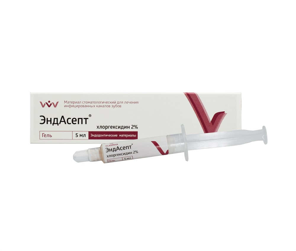 Гель "ЭндАсепт" содержит антисептики: метронидазол (10%), хлоргексидина биглюконат (2%), - активно подавляющие анаэробную флору корневых каналов.