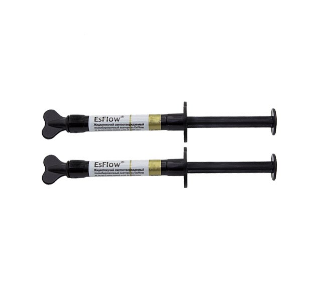 EsFlow AO3 (ЭсФлоу АO3) - это жидкотекучий светоотверждаемый пломбировочный материал. Средняя текучесть, наполненность 55% (по объему); компрессионная прочность 362МПа. Применяется при прямых реставрациях полостей всех групп (I-II - в качестве лайнера, III-V - для пломбирования).