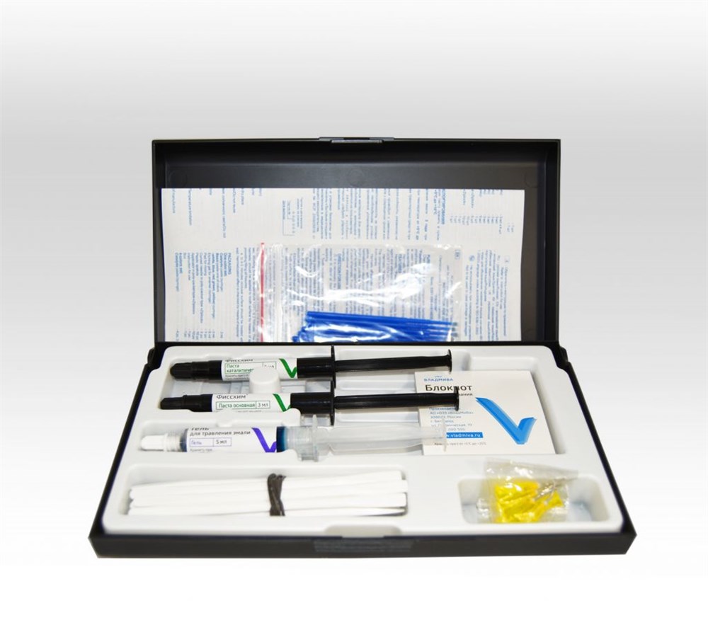 Герметик химического отверждения «Фиссхим-колор» представляет собой композит на основе органического связующего и силанизированного тонкодисперсного кварцевого наполнителя. «Фиссхим-колор» состоит из двух паст: основной и каталитической. Входящие в состав герметика фторсодержащие компоненты обеспечивают кариеспротективный эффект.