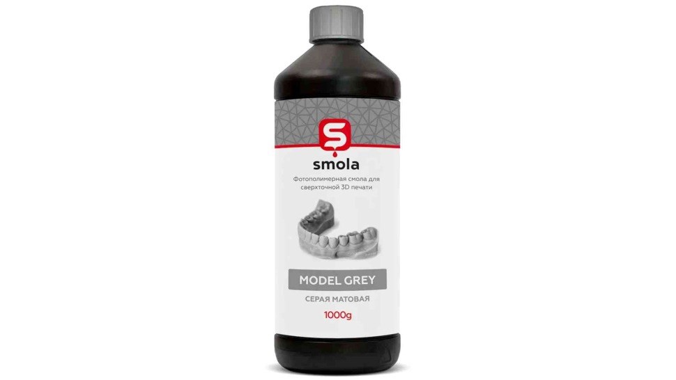 Фотополимерная смола SMOLA Model Grey для сверхточной 3D-печати моделей, которые должны выдерживать механическую нагрузку и высокую температуру. Прочный материал без усадки и неприятного запаха. Отсутствие паразитной засветки позволяет печатать с разрешением до 0,005 мм. Стабильное качество полимера от партии к партии. Практически без усадки. Не нужно делать расчет размеров с учетом усадки. Печатайте то, что моделируете, со 100 % точностью.