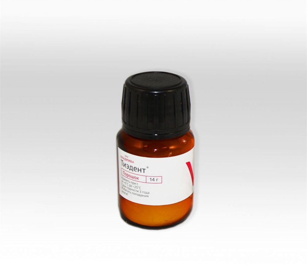 Материал «Тиэдент» относится к цинкоксидэвгенольным цементам. Выпускается в виде двух компонентов: порошка и жидкости.