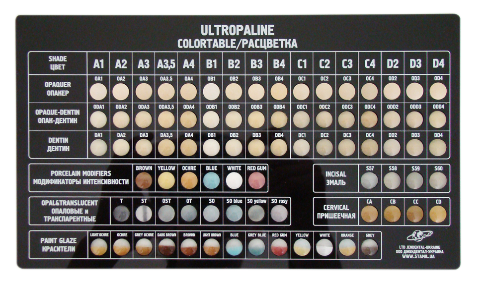 «Ультропалин (Ultropaline)» - универсальная фарфоровая масса для облицовки цельнолитых керамических каркасов при изготовлении металлокерамических коронок и мостовидных зубных протезов. Выпускается фирмой «ВладМиВа» совместно с «Джендентал» (Украина).